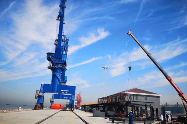 我公司于2018年12月與南通通常港務(wù)有限公司簽訂港口散裝物料物流中轉(zhuǎn)項目設(shè)備一批,2019年3月15日我公司安裝人員已正式進入現(xiàn)場進行安裝,為保證業(yè)主單位的生產(chǎn)進度及港口卸船機與帶式輸送機的協(xié)同生產(chǎn),我公司安裝人員在現(xiàn)場加班加點,目前現(xiàn)場已初具規(guī)模。