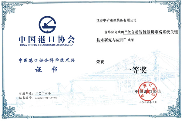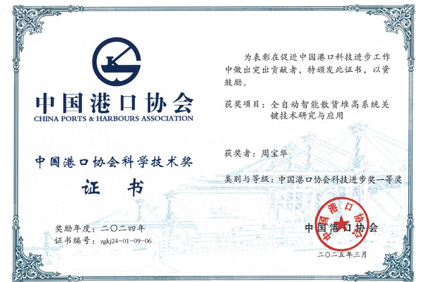 熱烈祝賀我公司“移動式堆料裝船一體機”榮獲中國港口協會科技進步獎一等獎