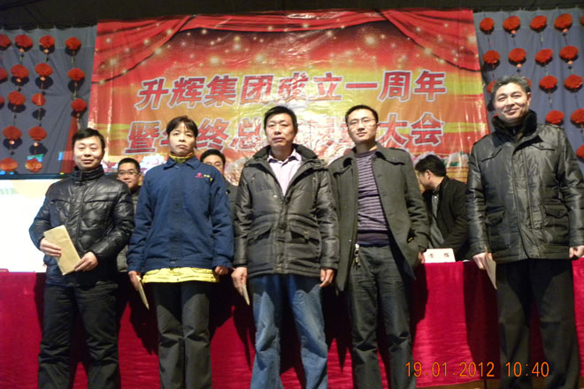 2012年1月19日,升輝集團慶祝成立一周年職工表彰大會在白甸鎮人民大會堂隆重召開。總結2011年的工作,表彰2011年度各項工作中涌現出的先進集體和個人,部署2012年的工作任務。