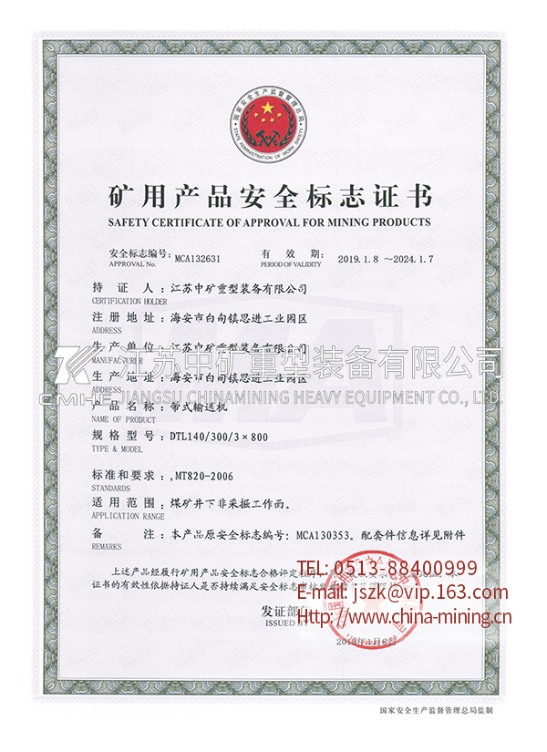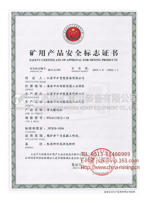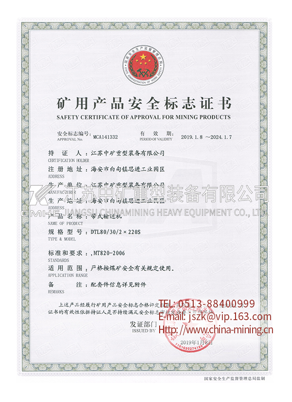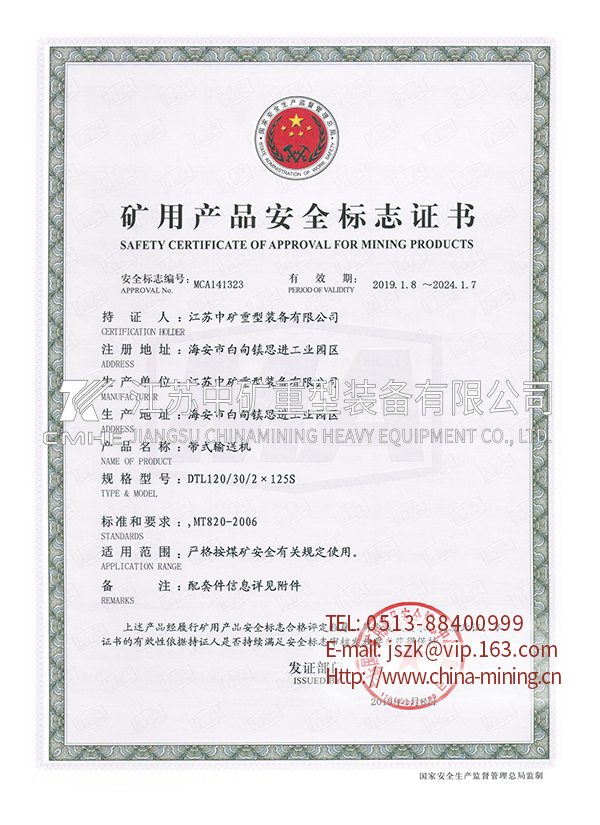 DTL帶式輸送機(jī)——礦用產(chǎn)品安全標(biāo)志證書