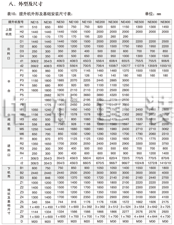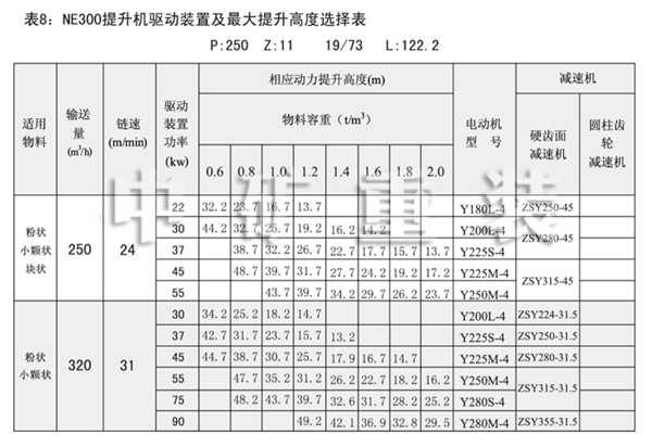 NE15、NE30、NE50、NE100、NE150、NE200、NE300、NE400型提升機(jī)的提升量、提升高度及動(dòng)力配備表見(jiàn)表2-9,選擇NE500、NE600、NE800型提升機(jī)時(shí),請(qǐng)與中礦公司技術(shù)部聯(lián)系,聯(lián)系人:周小姐,聯(lián)系電話(huà):0513-88400999。