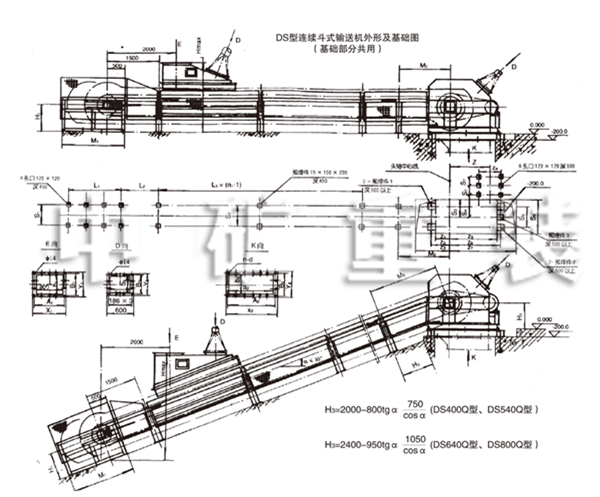 DS型連續(xù)式斗式輸送機外形及基礎(chǔ)圖(QS型)