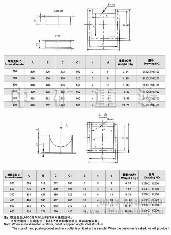 Type GX screw conveyor has right and left assemble way according to different assembling way.